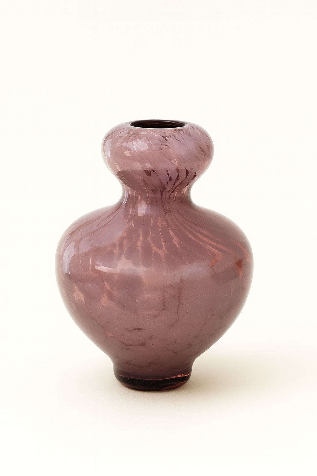 Each oil is housed in a beautiful vintage glass bottle, once used for perfume and carefully sourced from antique collections. This particular piece features a striking tower-like silhouette with a long, elegant stopper and soft blush undertones threaded with delicate veining. Its sculptural form and refined curves make it both a vessel and an objet d’art—an heirloom you’ll treasure long after the last drop.